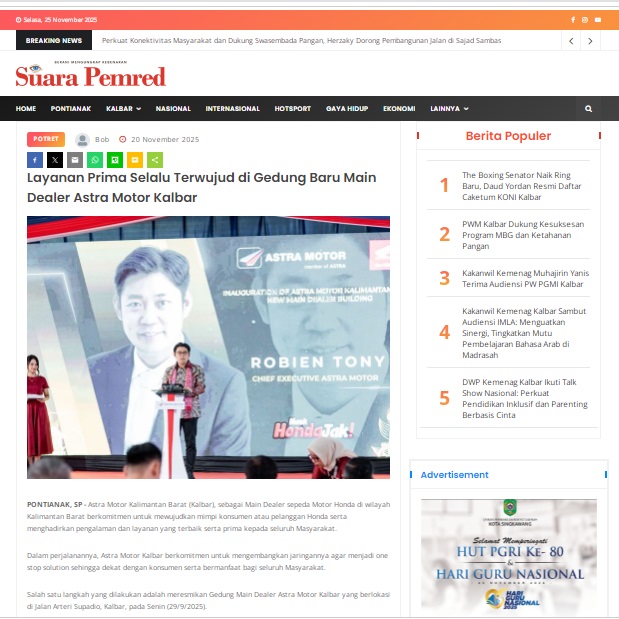 Layanan Prima Selalu Terwujud di Gedung Baru Main Dealer Astra Motor Kalbar by masmul 20 November 2025 in Silahkan kunjungi https://www.suarapemredkalbar.com/read/potret/20112025/layanan-prima-selalu-terwujud-di-gedung-baru-main-dealer-astra-motor-kalbar. You Might Like Regional Public Launching New ADV160 The SUV Pride Grand Launching New PCX 160 Truly Exceptional! Tetap hati-hati ya bro sist berkendara saat hujan.