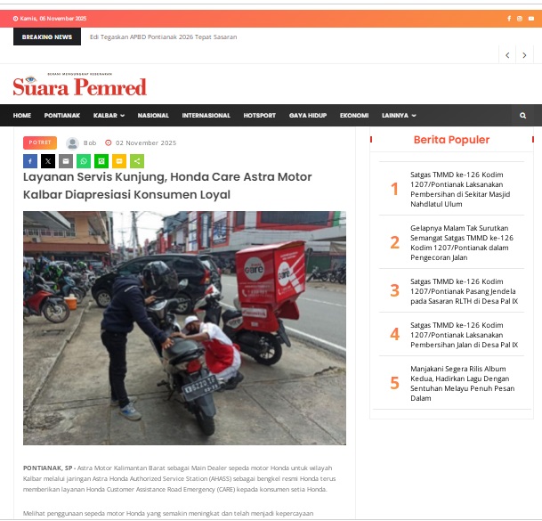 Layanan Servis Kunjung, Honda Care Astra Motor Kalbar Diapresiasi Konsumen Loyal by masmul 2 November 2025 in Silahkan kunjungi https://www.suarapemredkalbar.com/read/potret/02112025/layanan-servis-kunjung-honda-care-astra-motor-kalbar-diapresiasi-konsumen-loyal. You Might Like Regional Public Launching New ADV160 The SUV Pride Grand Launching New PCX 160 Truly Exceptional! Tetap hati-hati ya bro sist berkendara saat hujan.