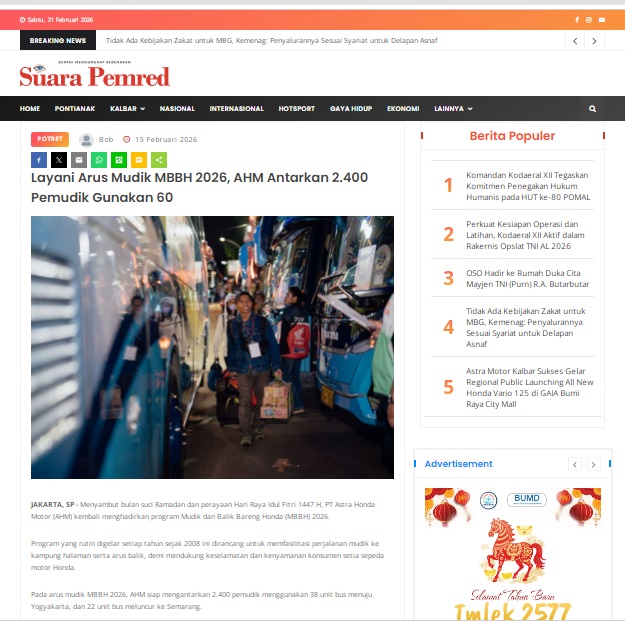 Layani Arus Mudik MBBH 2026, AHM Antarkan 2.400 Pemudik Gunakan 60 by masmul 15 Februari 2026 in Silahkan kunjungi https://www.suarapemredkalbar.com/read/potret/15022026/layani-arus-mudik-mbbh-2026-ahm-antarkan-2400-pemudik-gunakan-60. You Might Like Regional Public Launching New ADV160 The SUV Pride Grand Launching New PCX 160 Truly Exceptional! Tetap hati-hati ya bro sist berkendara saat hujan.