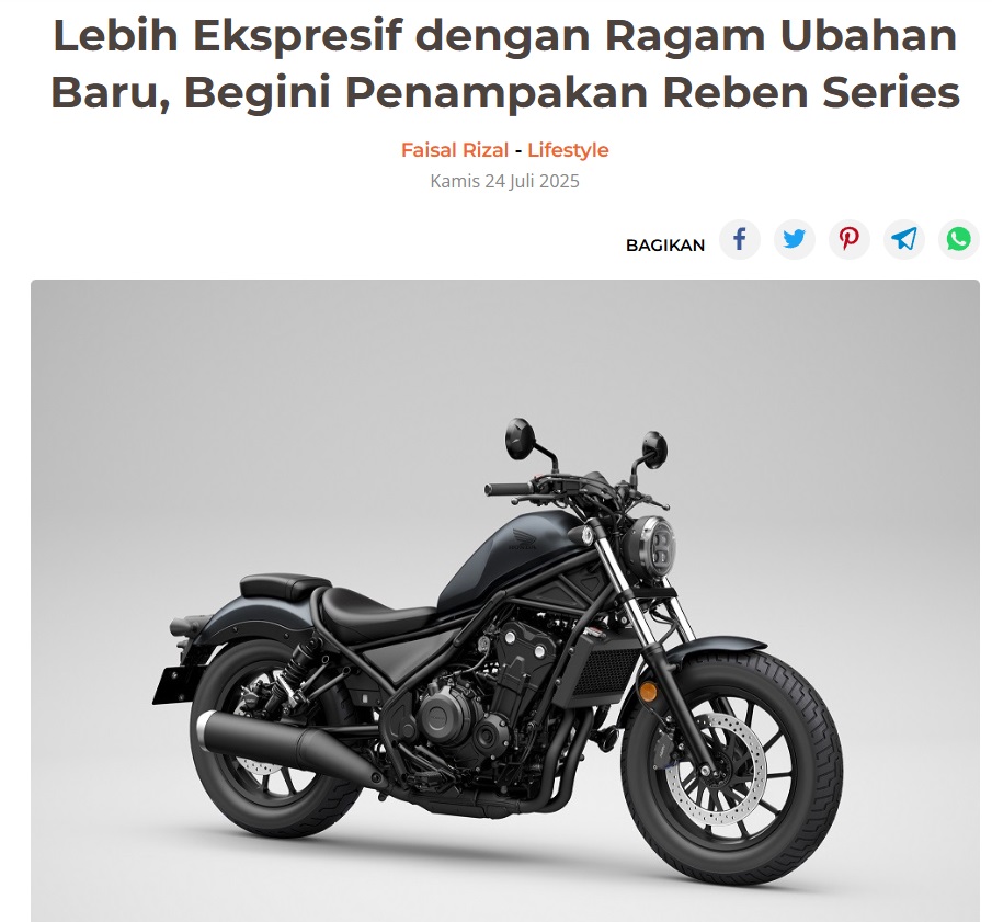 Lebih Ekspresif dengan Ragam Ubahan Baru, Begini Penampakan Reben Series by Dodi Dodi 24 Juli 2025 in Silahkan kunjungi https://harianberkat.com/2025/07/24/lebih-ekspresif-dengan-ragam-ubahan-baru-begini-penampakan-reben-series/. You Might Like Regional Public Launching New ADV160 The SUV Pride Grand Launching New PCX 160 Truly Exceptional! Tetap hati-hati ya bro sist berkendara saat hujan.