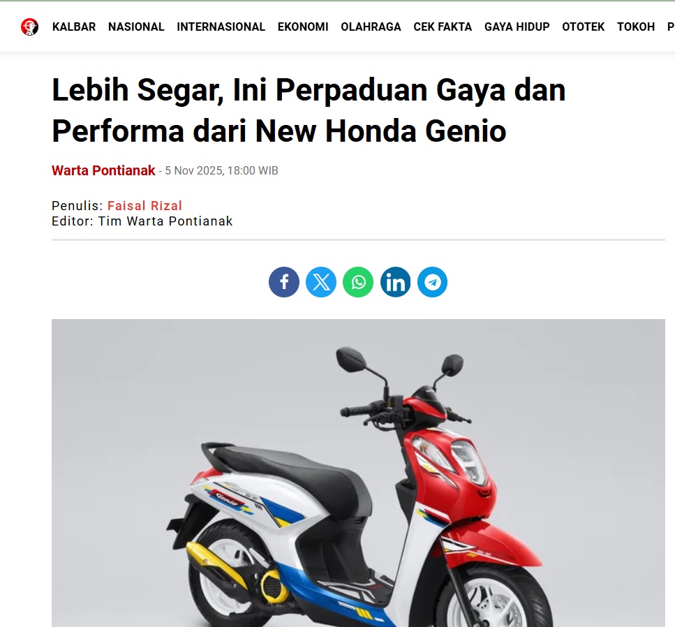 Lebih Segar, Ini Perpaduan Gaya dan Performa dari New Honda Genio by Faisal Rizal 5 November 2025 in Silahkan kunjungi https://wartapontianak.pikiran-rakyat.com/gaya-hidup/pr-1179769036/lebih-segar-ini-perpaduan-gaya-dan-performa-dari-new-honda-genio. You Might Like Regional Public Launching New ADV160 The SUV Pride Grand Launching New PCX 160 Truly Exceptional! Tetap hati-hati ya bro sist berkendara saat hujan.