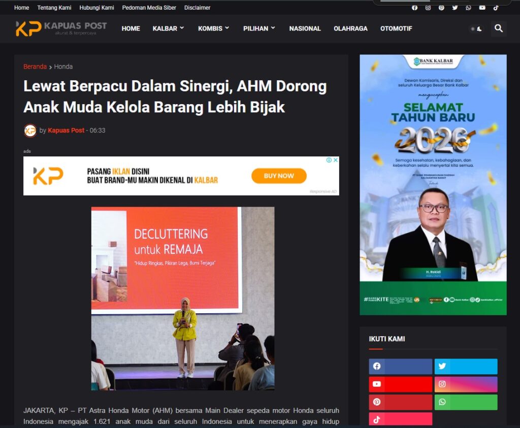 Lewat Berpacu Dalam Sinergi, AHM Dorong Anak Muda Kelola Barang Lebih Bijak by Muhammad Arif 4 Januari 2026 in Silahkan kunjungi https://www.kapuaspost.web.id/2026/01/lewat-berpacu-dalam-sinergi-ahm-dorong_4.html. Tags: astra Astra Motor kalbar Astra Motor Pontianak astramotor honda kalbar pontianak sepeda motor You Might Like Regional Public Launching New ADV160 The SUV Pride Grand Launching New PCX 160 Truly Exceptional! Tetap hati-hati ya bro sist berkendara saat hujan.