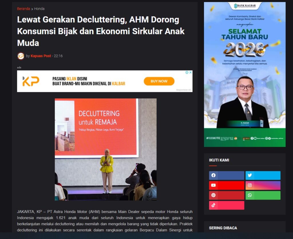 Lewat Gerakan Decluttering, AHM Dorong Konsumsi Bijak dan Ekonomi Sirkular Anak Muda by Muhammad Arif 8 Januari 2026 in Silahkan kunjungi https://www.kapuaspost.web.id/2026/01/lewat-gerakan-decluttering-ahm-dorong_12.html. Tags: astra Astra Motor kalbar Astra Motor Pontianak astramotor honda kalbar pontianak sepeda motor You Might Like Regional Public Launching New ADV160 The SUV Pride Grand Launching New PCX 160 Truly Exceptional! Tetap hati-hati ya bro sist berkendara saat hujan.