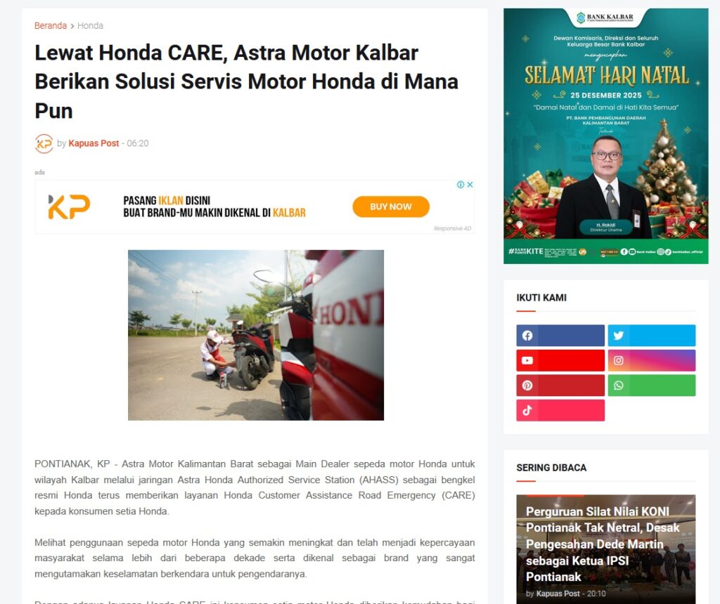 Lewat Honda CARE, Astra Motor Kalbar Berikan Solusi Servis Motor Honda di Mana Pun by Muhammad Arif 23 Desember 2025 in Silahkan kunjungi https://www.kapuaspost.web.id/2025/12/lewat-honda-care-astra-motor-kalbar.html. Tags: astra Astra Motor kalbar Astra Motor Pontianak astramotor honda kalbar pontianak sepeda motor You Might Like Regional Public Launching New ADV160 The SUV Pride Grand Launching New PCX 160 Truly Exceptional! Tetap hati-hati ya bro sist berkendara saat hujan.