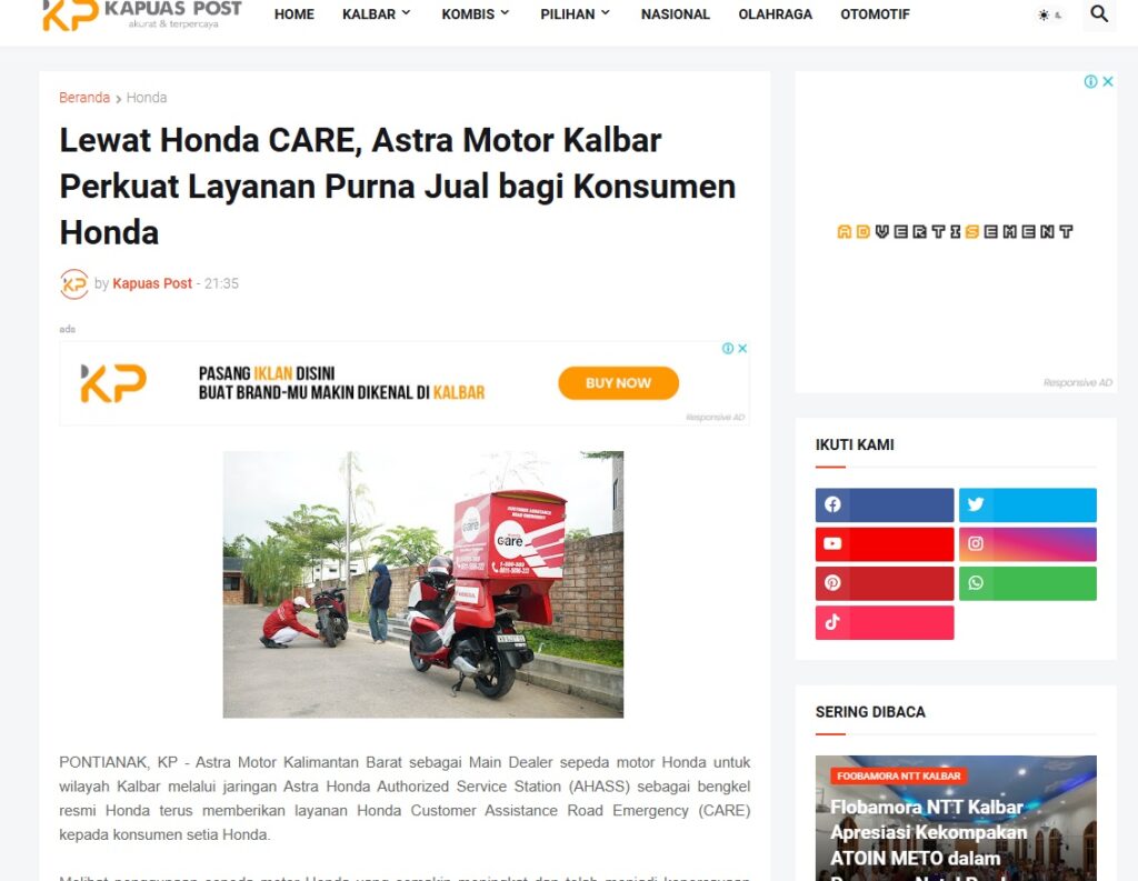 Lewat Honda CARE, Astra Motor Kalbar Perkuat Layanan Purna Jual bagi Konsumen Honda by Muhammad Arif 2 Februari 2026 in Silahkan kunjungi https://www.kapuaspost.web.id/2026/02/lewat-honda-care-astra-motor-kalbar_6.html. Tags: astra Astra Motor kalbar Astra Motor Pontianak astramotor honda kalbar pontianak sepeda motor You Might Like Regional Public Launching New ADV160 The SUV Pride Grand Launching New PCX 160 Truly Exceptional! Tetap hati-hati ya bro sist berkendara saat hujan.