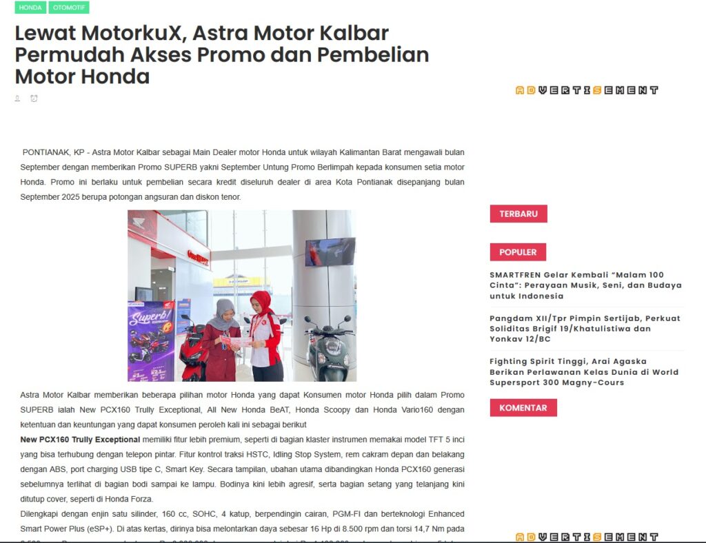 Lewat MotorkuX, Astra Motor Kalbar Permudah Akses Promo dan Pembelian Motor Honda