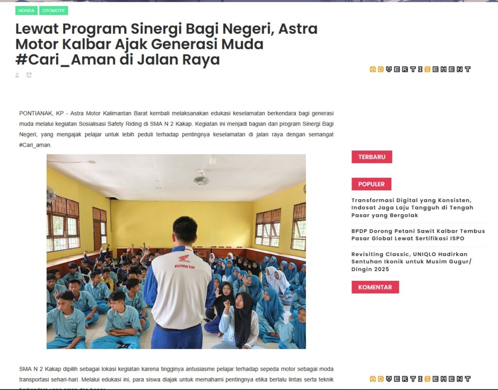 Lewat Program Sinergi Bagi Negeri, Astra Motor Kalbar Ajak Generasi Muda #Cari_Aman di Jalan Raya by Muhammad Arif 21 Agustus 2025 in Silahkan kunjungi https://www.kapuaspost.web.id/2025/08/lewat-program-sinergi-bagi-negeri-astra.html. Tags: astra Astra Motor kalbar Astra Motor Pontianak astramotor honda kalbar pontianak sepeda motor You Might Like Regional Public Launching New ADV160 The SUV Pride Grand Launching New PCX 160 Truly Exceptional! Tetap hati-hati ya bro sist berkendara saat hujan.
