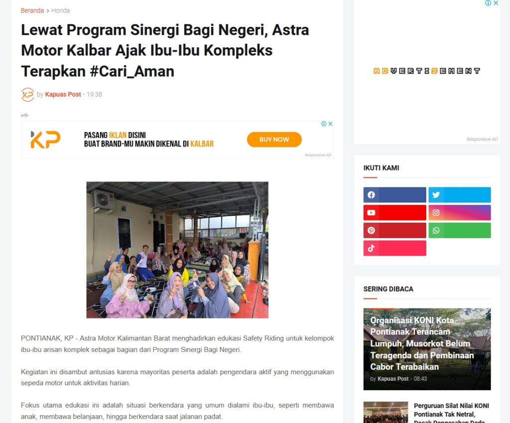 Lewat Program Sinergi Bagi Negeri, Astra Motor Kalbar Ajak Ibu-Ibu Kompleks Terapkan #Cari_Aman by Muhammad Arif 11 Desember 2025 in Silahkan kunjungi https://www.kapuaspost.web.id/2025/12/lewat-program-sinergi-bagi-negeri-astra.html. Tags: astra Astra Motor kalbar Astra Motor Pontianak astramotor honda kalbar pontianak sepeda motor You Might Like Regional Public Launching New ADV160 The SUV Pride Grand Launching New PCX 160 Truly Exceptional! Tetap hati-hati ya bro sist berkendara saat hujan.