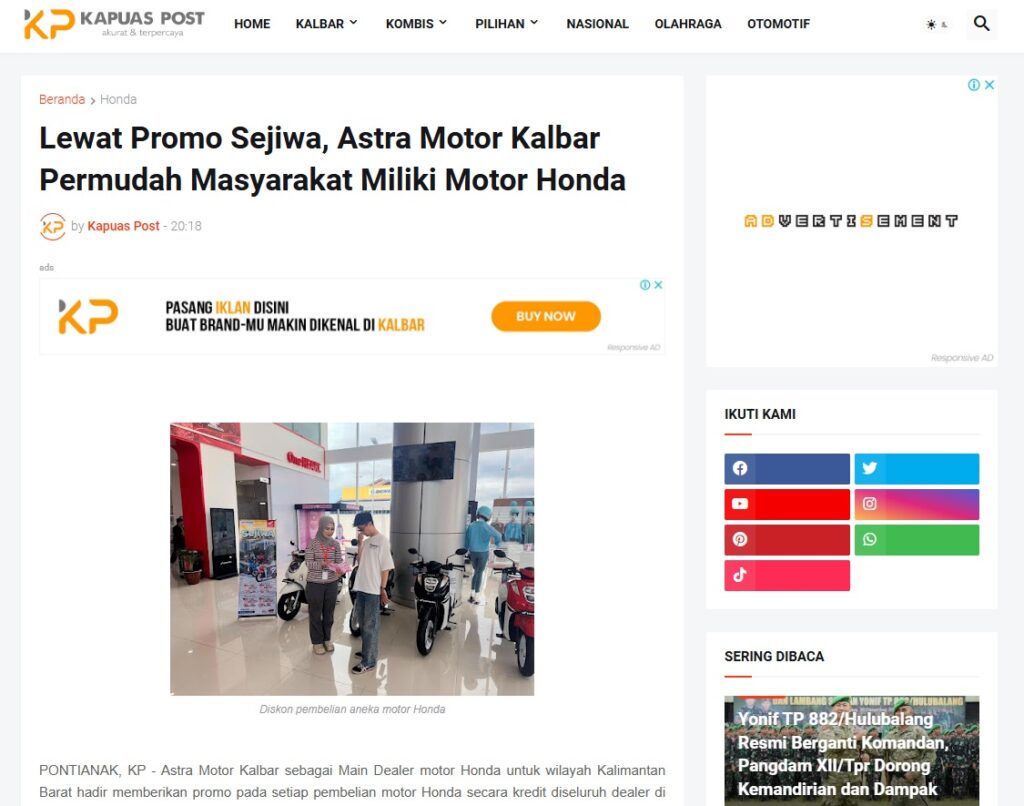 Lewat Promo Sejiwa, Astra Motor Kalbar Permudah Masyarakat Miliki Motor Honda by Muhammad Arif 20 Januari 2026 in Silahkan kunjungi https://www.kapuaspost.web.id/2026/01/lewat-promo-sejiwa-astra-motor-kalbar.html. Tags: astra Astra Motor kalbar Astra Motor Pontianak astramotor honda kalbar pontianak sepeda motor You Might Like Regional Public Launching New ADV160 The SUV Pride Grand Launching New PCX 160 Truly Exceptional! Tetap hati-hati ya bro sist berkendara saat hujan.