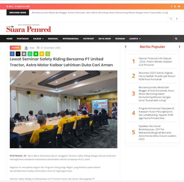 Lewat Seminar Safety Riding Bersama PT United Tractor, Astra Motor Kalbar Lahirkan Duta Cari Aman by masmul 21 Desember 2025 in Silahkan kunjungi https://www.suarapemredkalbar.com/read/potret/21122025/lewat-seminar-safety-riding-bersama-pt-united-tractor-astra-motor-kalbar-lahirkan-duta-cari-aman. You Might Like Regional Public Launching New ADV160 The SUV Pride Grand Launching New PCX 160 Truly Exceptional! Tetap hati-hati ya bro sist berkendara saat hujan.