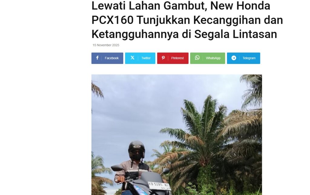 Lewati Lahan Gambut, New Honda PCX160 Tunjukkan Kecanggihan dan Ketangguhannya di Segala Lintasan by Nova Sari 15 November 2025 in Silahkan kunjungi https://equator.co.id/lintasi-lahan-gambut-new-honda-pcx160-tunjukkan-kecanggihan-dan-ketangguhannya-di-segala-lintasan/#google_vignette. You Might Like Regional Public Launching New ADV160 The SUV Pride Grand Launching New PCX 160 Truly Exceptional! Tetap hati-hati ya bro sist berkendara saat hujan.