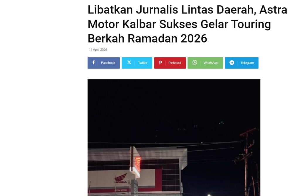 Libatkan Jurnalis Lintas Daerah, Astra Motor Kalbar Sukses Gelar Touring Berkah Ramadan 2026 by Nova Sari 14 April 2026 in Silahkan kunjungi https://equator.co.id/libatkan-jurnalis-lintas-daerah-astra-motor-kalbar-sukses-gelar-touring-berkah-ramadan-2026/. You Might Like Regional Public Launching New ADV160 The SUV Pride Grand Launching New PCX 160 Truly Exceptional! Tetap hati-hati ya bro sist berkendara saat hujan.