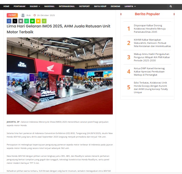 Lima Hari Gelaran IMOS 2025, AHM Juala Ratusan Unit Motor Terbaik by masmul 26 Oktober 2025 in Silahkan kunjungi https://www.suarapemredkalbar.com/read/potret/26102025/lima-hari-gelaran-imos-2025-ahm-juala-ratusan-unit-motor-terbaik. You Might Like Regional Public Launching New ADV160 The SUV Pride Grand Launching New PCX 160 Truly Exceptional! Tetap hati-hati ya bro sist berkendara saat hujan.