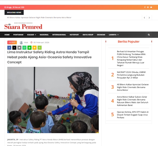 Lima Instruktur Safety Riding Astra Honda Tampil Hebat pada Ajang Asia-Oceania Safety Innovative Concept by masmul 5 Februari 2026 in Silahkan kunjungi https://www.suarapemredkalbar.com/read/potret/05022026/lima-instruktur-safety-riding-astra-honda-tampil-hebat-pada-ajang-asia-oceania-safety-innovative-concept. You Might Like Regional Public Launching New ADV160 The SUV Pride Grand Launching New PCX 160 Truly Exceptional! Tetap hati-hati ya bro sist berkendara saat hujan.