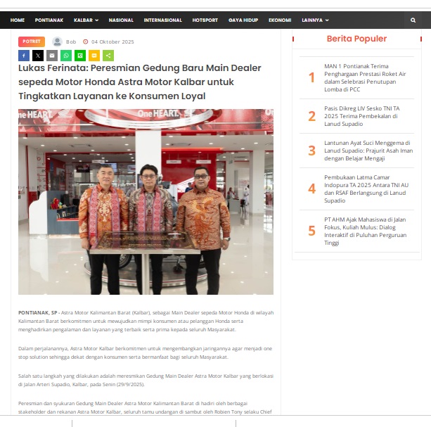 Lukas Ferinata: Peresmian Gedung Baru Main Dealer sepeda Motor Honda Astra Motor Kalbar untuk Tingkatkan Layanan ke Konsumen Loyal by masmul 4 Oktober 2025 in Silahkan kunjungi https://www.suarapemredkalbar.com/read/potret/04102025/lukas-ferinata-peresmian-gedung-baru-main-dealer-sepeda-motor-honda-astra-motor-kalbar-untuk-tingkatkan-layanan-ke-konsumen-loyal. You Might Like Regional Public Launching New ADV160 The SUV Pride Grand Launching New PCX 160 Truly Exceptional! Tetap hati-hati ya bro sist berkendara saat hujan.