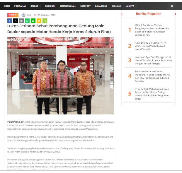 Lukas Ferinata Sebut Pembangunan Gedung Main Dealer sepeda Motor Honda Kerja Keras Seluruh Pihak by masmul 9 Oktober 2025 in Silahkan kunjungi https://www.suarapemredkalbar.com/read/potret/09102025/lukas-ferinata-sebut-pembangunan-gedung-main-dealer-sepeda-motor-honda-kerja-keras-seluruh-pihak. You Might Like Regional Public Launching New ADV160 The SUV Pride Grand Launching New PCX 160 Truly Exceptional! Tetap hati-hati ya bro sist berkendara saat hujan.