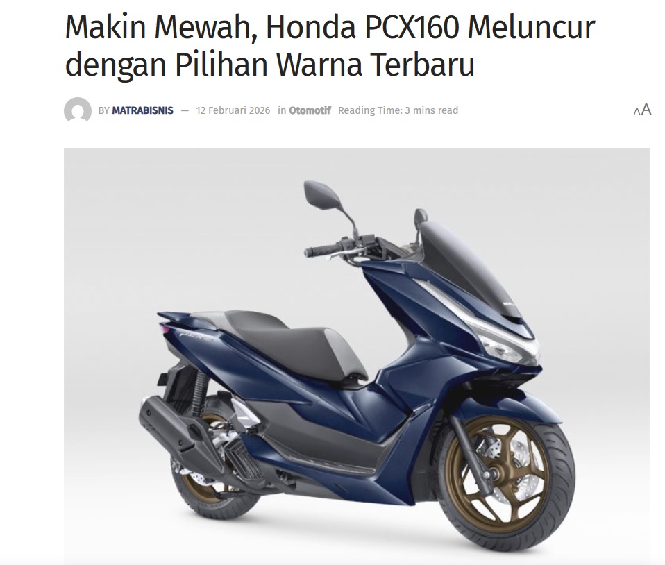 Makin Mewah, Honda PCX160 Meluncur dengan Pilihan Warna Terbaru by Sri Yuliantiningsih 12 Februari 2026 in Silahkan kunjungi https://matrabisnis.id/2026/02/12/makin-mewah-honda-pcx160-meluncur-dengan-pilihan-warna-terbaru/. You Might Like Regional Public Launching New ADV160 The SUV Pride Grand Launching New PCX 160 Truly Exceptional! Tetap hati-hati ya bro sist berkendara saat hujan.