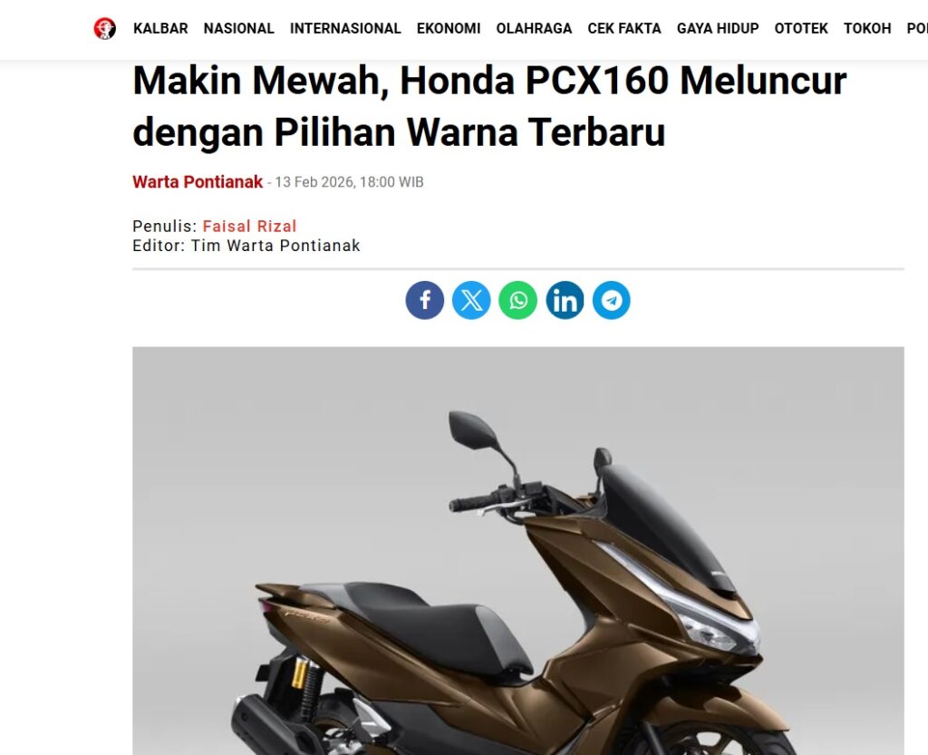 Makin Mewah, Honda PCX160 Meluncur dengan Pilihan Warna Terbaru by Faisal Rizal 13 Februari 2026 in Silahkan kunjungi https://wartapontianak.pikiran-rakyat.com/gaya-hidup/pr-11710004964/makin-mewah-honda-pcx160-meluncur-dengan-pilihan-warna-terbaru. You Might Like Regional Public Launching New ADV160 The SUV Pride Grand Launching New PCX 160 Truly Exceptional! Tetap hati-hati ya bro sist berkendara saat hujan.