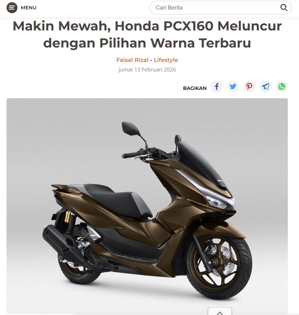 Makin Mewah, Honda PCX160 Meluncur dengan Pilihan Warna Terbaru by Dodi Dodi 13 Februari 2026 in Silahkan kunjungi https://harianberkat.com/2026/02/13/makin-mewah-honda-pcx160-meluncur-dengan-pilihan-warna-terbaru/. You Might Like Regional Public Launching New ADV160 The SUV Pride Grand Launching New PCX 160 Truly Exceptional! Tetap hati-hati ya bro sist berkendara saat hujan.
