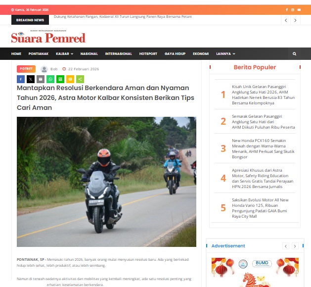 Mantapkan Resolusi Berkendara Aman dan Nyaman Tahun 2026, Astra Motor Kalbar Konsisten Berikan Tips Cari Aman by masmul 22 Februari 2026 in Silahkan kunjungi https://www.suarapemredkalbar.com/read/potret/22022026/mantapkan-resolusi-berkendara-aman-dan-nyaman-tahun-2026-astra-motor-kalbarkonsisten-berikan-tips-cari-aman. You Might Like Regional Public Launching New ADV160 The SUV Pride Grand Launching New PCX 160 Truly Exceptional! Tetap hati-hati ya bro sist berkendara saat hujan.