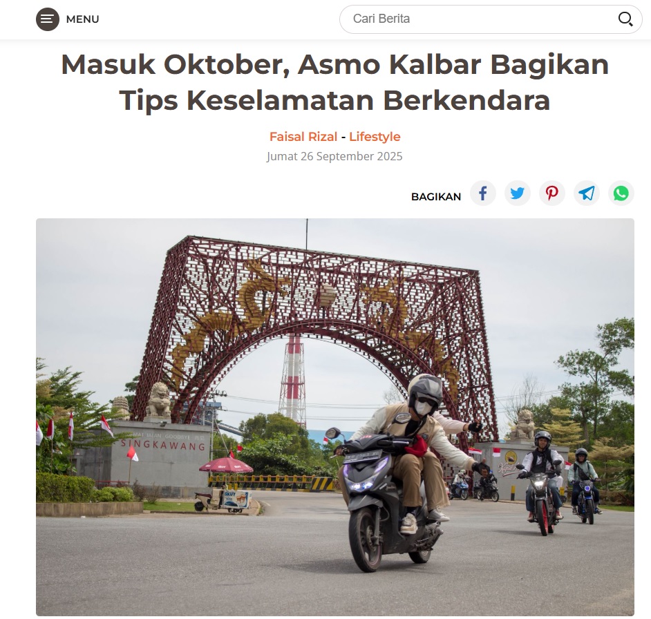 Masuk Oktober, Asmo Kalbar Bagikan Tips Keselamatan Berkendara by Dodi Dodi 26 September 2025 in Silahkan kunjungi https://harianberkat.com/2025/09/26/masuk-oktober-asmo-kalbar-bagikan-tips-keselamatan-berkendara/. You Might Like Regional Public Launching New ADV160 The SUV Pride Grand Launching New PCX 160 Truly Exceptional! Tetap hati-hati ya bro sist berkendara saat hujan.