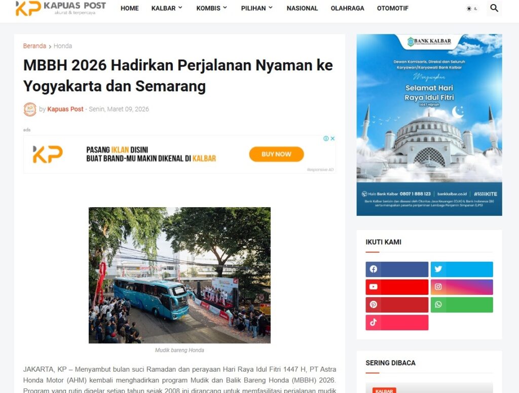 MBBH 2026 Hadirkan Perjalanan Nyaman ke Yogyakarta dan Semarang by Muhammad Arif 9 Maret 2026 in Silahkan kunjungi https://www.kapuaspost.web.id/2026/03/mbbh-2026-hadirkan-perjalanan-nyaman-ke.html. Tags: astra Astra Motor kalbar Astra Motor Pontianak astramotor honda kalbar pontianak sepeda motor You Might Like Regional Public Launching New ADV160 The SUV Pride Grand Launching New PCX 160 Truly Exceptional! Tetap hati-hati ya bro sist berkendara saat hujan.
