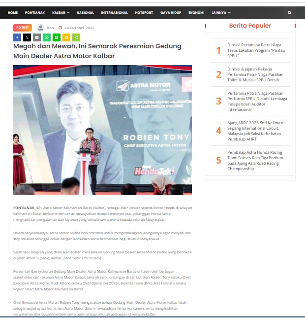 Megah dan Mewah, Ini Semarak Peresmian Gedung Main Dealer Astra Motor Kalbar by masmul 14 Oktober 2025 in Silahkan kunjungi https://www.suarapemredkalbar.com/read/potret/14102025/megah-dan-mewah-ini-semarak-peresmian-gedung-main-dealer-astra-motor-kalbar. You Might Like Regional Public Launching New ADV160 The SUV Pride Grand Launching New PCX 160 Truly Exceptional! Tetap hati-hati ya bro sist berkendara saat hujan.