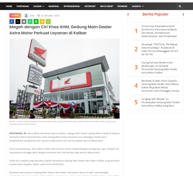 Megah dengan Ciri Khas AHM, Gedung Main Dealer Astra Motor Perkuat Layanan di Kalbar by masmul 2 Oktober 2025 in Silahkan kunjungi https://www.suarapemredkalbar.com/read/potret/02102025/megah-dengan-ciri-khas-ahm-gedung-main-dealer-astra-motor-perkuat-layanan-di-kalbar. You Might Like Regional Public Launching New ADV160 The SUV Pride Grand Launching New PCX 160 Truly Exceptional! Tetap hati-hati ya bro sist berkendara saat hujan.