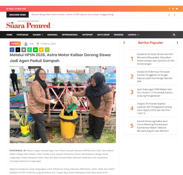 Melalui HPSN 2026, Astra Motor Kalbar Dorong Siswa Jadi Agen Peduli Sampah by masmul 14 Maret 2026 in Silahkan kunjungi https://www.suarapemredkalbar.com/read/potret/14032026/melalui-hpsn-2026-astra-motor-kalbar-dorong-siswa-jadi-agen-peduli-sampah. You Might Like Regional Public Launching New ADV160 The SUV Pride Grand Launching New PCX 160 Truly Exceptional! Tetap hati-hati ya bro sist berkendara saat hujan.