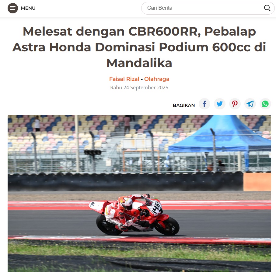 Melesat dengan CBR600RR, Pebalap Astra Honda Dominasi Podium 600cc di Mandalika by Dodi Dodi 24 September 2025 in Silahkan kunjungi https://harianberkat.com/2025/09/24/melesat-dengan-cbr600rr-pebalap-astra-honda-dominasi-podium-600cc-di-mandalika/. You Might Like Regional Public Launching New ADV160 The SUV Pride Grand Launching New PCX 160 Truly Exceptional! Tetap hati-hati ya bro sist berkendara saat hujan.