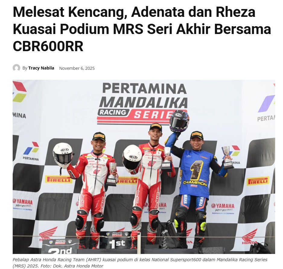 Melesat Kencang, Adenata dan Rheza Kuasai Podium MRS Seri Akhir Bersama CBR600RR by Leo Prima 6 November 2025 in Silahkan kunjungi https://pontianaktoday.id/melesat-kencang-adenata-dan-rheza-kuasai-podium-mrs-seri-akhir-bersama-cbr600rr/. You Might Like Regional Public Launching New ADV160 The SUV Pride Grand Launching New PCX 160 Truly Exceptional! Tetap hati-hati ya bro sist berkendara saat hujan.