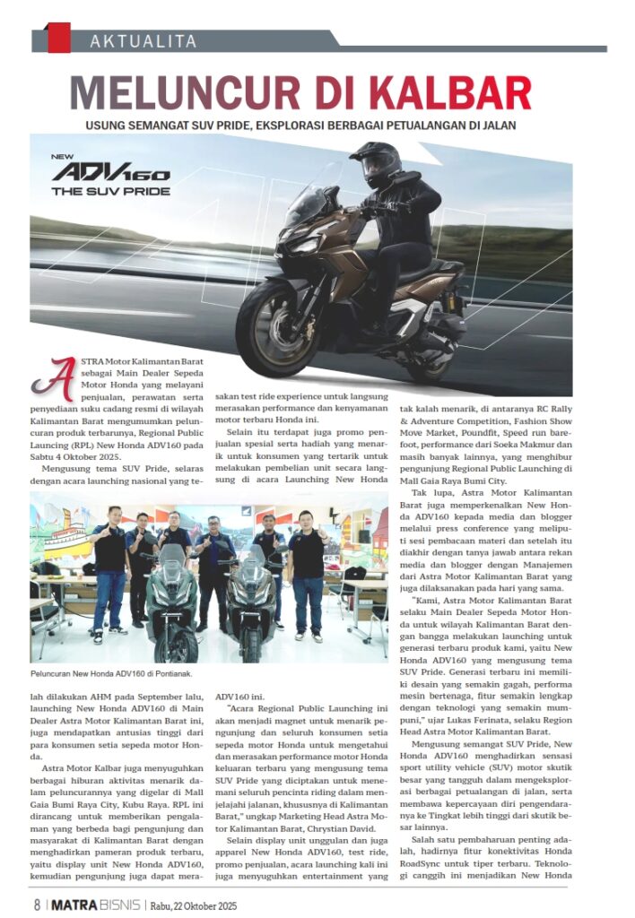 MELUNCUR DI KALBAR – USUNG SEMANG AT SUV PRIDE, EKSPLORASI BERBAG AI PETUALANGAN DI JALAN by Sri Yuliantiningsih 22 Oktober 2025 in Silahkan buka . You Might Like Regional Public Launching New ADV160 The SUV Pride Grand Launching New PCX 160 Truly Exceptional! Tetap hati-hati ya bro sist berkendara saat hujan.