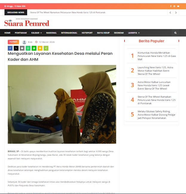 Menguatkan Layanan Kesehatan Desa melalui Peran Kader dan AHM by masmul 12 Maret 2026 in Silahkan kunjungi https://www.suarapemredkalbar.com/read/potret/12032026/menguatkan-layanan-kesehatan-desa-melalui-peran-kader-dan-ahm. You Might Like Regional Public Launching New ADV160 The SUV Pride Grand Launching New PCX 160 Truly Exceptional! Tetap hati-hati ya bro sist berkendara saat hujan.