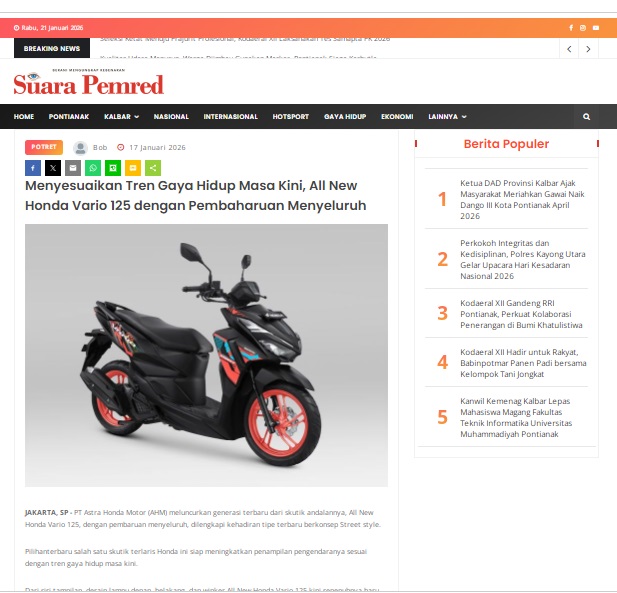 Menyesuaikan Tren Gaya Hidup Masa Kini, All New Honda Vario 125 dengan Pembaharuan Menyeluruh by masmul 17 Januari 2026 in Silahkan kunjungi https://www.suarapemredkalbar.com/read/potret/17012026/menyesuaikan-tren-gaya-hidup-masa-kini-all-new-honda-vario-125-dengan-pembaharuan-menyeluruh. You Might Like Regional Public Launching New ADV160 The SUV Pride Grand Launching New PCX 160 Truly Exceptional! Tetap hati-hati ya bro sist berkendara saat hujan.