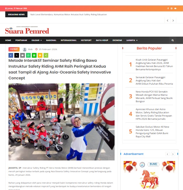 Metode Interaktif Seminar Safety Riding Bawa Instruktur Safety Riding AHM Raih Peringkat Kedua saat Tampil di Ajang Asia-Oceania Safety Innovative Concept by masmul 25 Februari 2026 in Silahkan kunjungi https://www.suarapemredkalbar.com/read/potret/25022026/metode-interaktif-seminar-safety-riding-bawa-instruktur-safety-riding-ahm-raih-peringkat-kedua-saat-tampil-di-ajang-asia-oceania-safety-innovative-concept. You Might Like Regional Public Launching New ADV160 The SUV Pride Grand Launching New PCX 160 Truly Exceptional! Tetap hati-hati ya bro sist berkendara saat hujan.