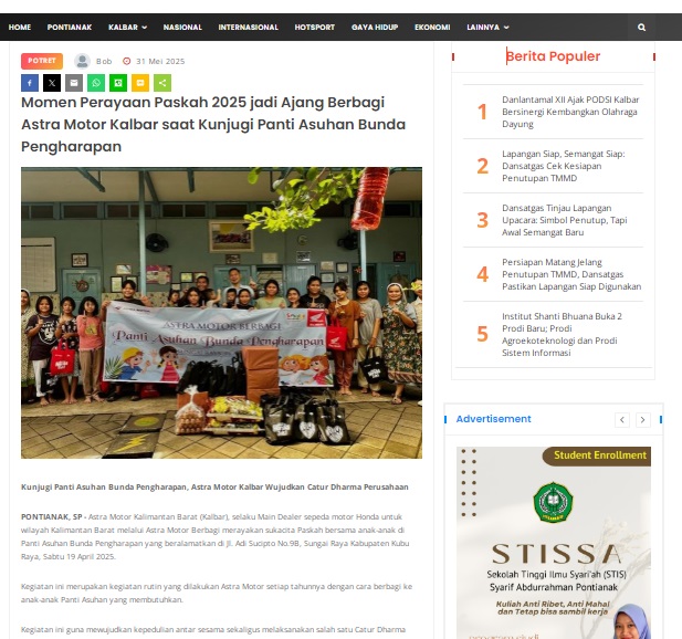 Momen Perayaan Paskah 2025 jadi Ajang Berbagi Astra Motor Kalbar saat Kunjugi Panti Asuhan Bunda Pengharapan by masmul 31 Mei 2025 in Silahkan kunjungi https://www.suarapemredkalbar.com/read/potret/31052025/momen-perayaan-paskah-2025-jadi-ajang-berbagi-astra-motor-kalbar-saat-kunjugi-panti-asuhan-bunda-pengharapan. You Might Like Regional Public Launching New ADV160 The SUV Pride Grand Launching New PCX 160 Truly Exceptional! Tetap hati-hati ya bro sist berkendara saat hujan.