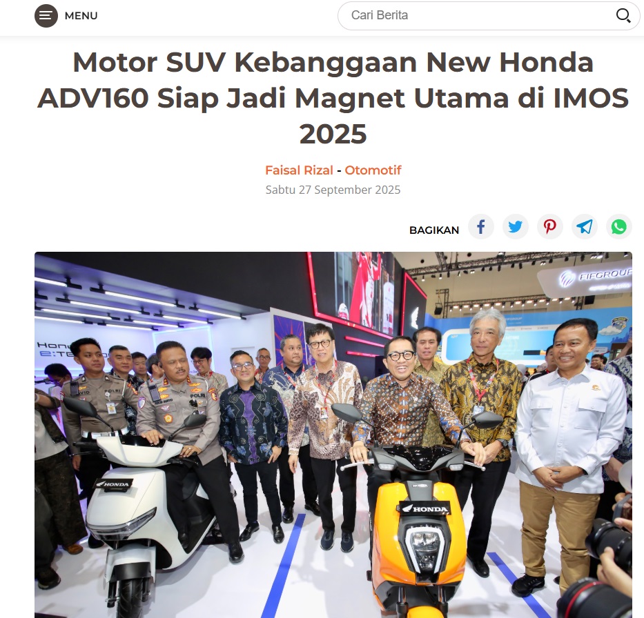 Motor SUV Kebanggaan New Honda ADV160 Siap Jadi Magnet Utama di IMOS 2025 by Dodi Dodi 27 September 2025 in Silahkan kunjungi https://harianberkat.com/2025/09/27/motor-suv-kebanggaan-new-honda-adv160-siap-jadi-magnet-utama-di-imos-2025/#google_vignette. You Might Like Regional Public Launching New ADV160 The SUV Pride Grand Launching New PCX 160 Truly Exceptional! Tetap hati-hati ya bro sist berkendara saat hujan.