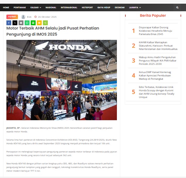 Motor Terbaik AHM Selalu jadi Pusat Perhatian Pengunjung di IMOS 2025 by masmul 26 Oktober 2025 in Silahkan kunjungi https://www.suarapemredkalbar.com/read/potret/26102025/motor-terbaik-ahm-selalu-jadi-pusat-perhatian-pengunjung-di-imos-2025. You Might Like Regional Public Launching New ADV160 The SUV Pride Grand Launching New PCX 160 Truly Exceptional! Tetap hati-hati ya bro sist berkendara saat hujan.