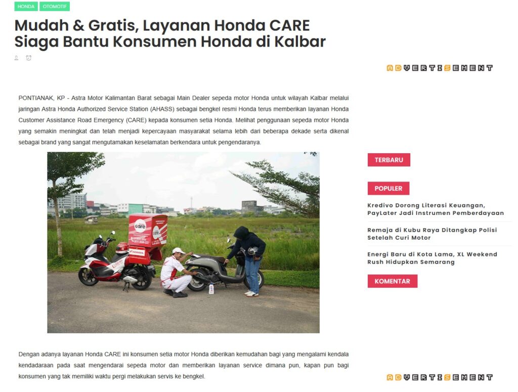 Mudah & Gratis, Layanan Honda CARE Siaga Bantu Konsumen Honda di Kalbar by Muhammad Arif 6 September 2025 in Silahkan kunjungi https://www.kapuaspost.web.id/2025/09/mudah-gratis-layanan-honda-care-siaga.html. Tags: astra Astra Motor kalbar Astra Motor Pontianak astramotor honda kalbar pontianak sepeda motor You Might Like Regional Public Launching New ADV160 The SUV Pride Grand Launching New PCX 160 Truly Exceptional! Tetap hati-hati ya bro sist berkendara saat hujan.