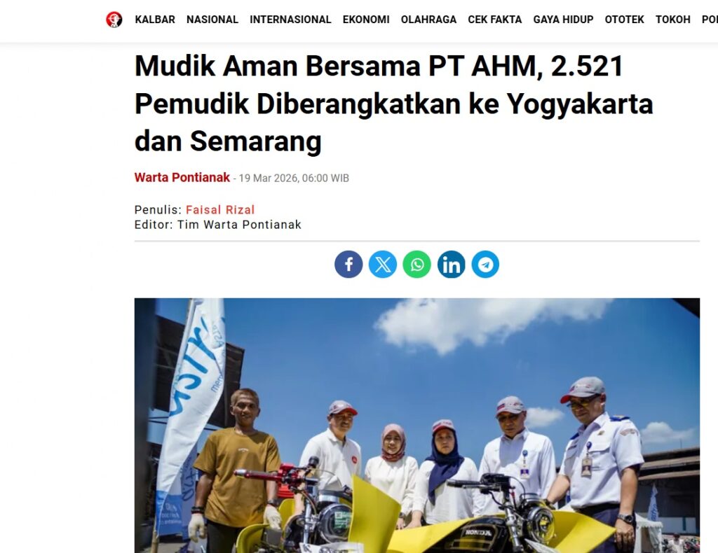 Mudik Aman Bersama PT AHM, 2.521 Pemudik Diberangkatkan ke Yogyakarta dan Semarang by Faisal Rizal 19 Maret 2026 in Silahkan kunjungi https://wartapontianak.pikiran-rakyat.com/gaya-hidup/pr-11710087579/mudik-aman-bersama-pt-ahm-2521-pemudik-diberangkatkan-ke-yogyakarta-dan-semarang. You Might Like Regional Public Launching New ADV160 The SUV Pride Grand Launching New PCX 160 Truly Exceptional! Tetap hati-hati ya bro sist berkendara saat hujan.