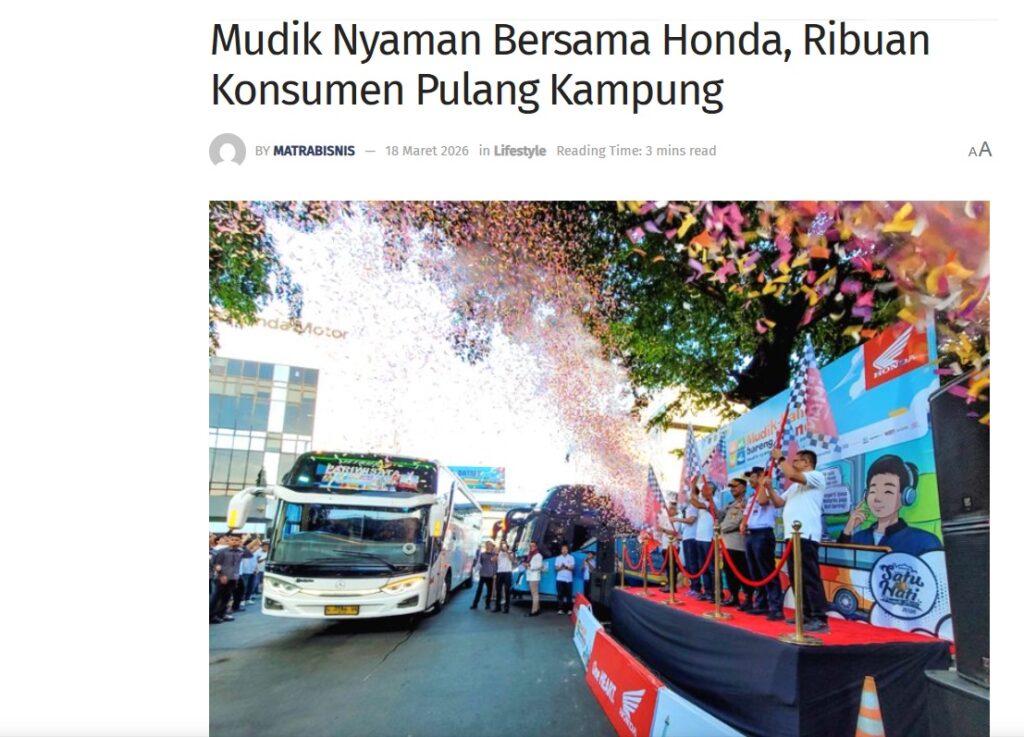 Mudik Nyaman Bersama Honda, Ribuan Konsumen Pulang Kampung by Sri Yuliantiningsih 18 Maret 2026 in Silahkan kunjungi https://matrabisnis.id/2026/03/18/mudik-nyaman-bersama-honda-ribuan-konsumen-pulang-kampung/#google_vignette. You Might Like Regional Public Launching New ADV160 The SUV Pride Grand Launching New PCX 160 Truly Exceptional! Tetap hati-hati ya bro sist berkendara saat hujan.