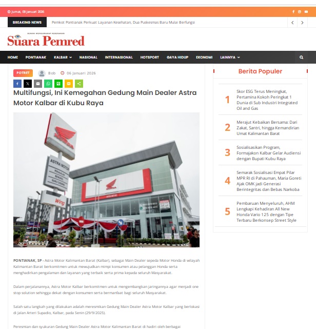 Multifungsi, Ini Kemegahan Gedung Main Dealer Astra Motor Kalbar di Kubu Raya by masmul 6 Januari 2026 in Silahkan kunjungi https://www.suarapemredkalbar.com/read/potret/06012026/multifungsi-ini-kemegahan-gedung-main-dealer-astra-motor-kalbar-di-kubu-raya. You Might Like Regional Public Launching New ADV160 The SUV Pride Grand Launching New PCX 160 Truly Exceptional! Tetap hati-hati ya bro sist berkendara saat hujan.