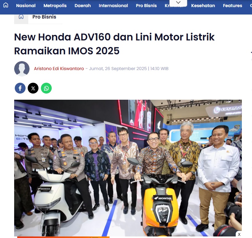 New Honda ADV160 dan Lini Motor Listrik Ramaikan IMOS 2025 by Aristono Edi Kiswantoro 26 September 2025 in Silahkan kunjungi https://pontianakpost.jawapos.com/pro-bisnis/1466624928/new-honda-adv160-dan-lini-motor-listrik-ramaikan-imos-2025. You Might Like Regional Public Launching New ADV160 The SUV Pride Grand Launching New PCX 160 Truly Exceptional! Tetap hati-hati ya bro sist berkendara saat hujan.