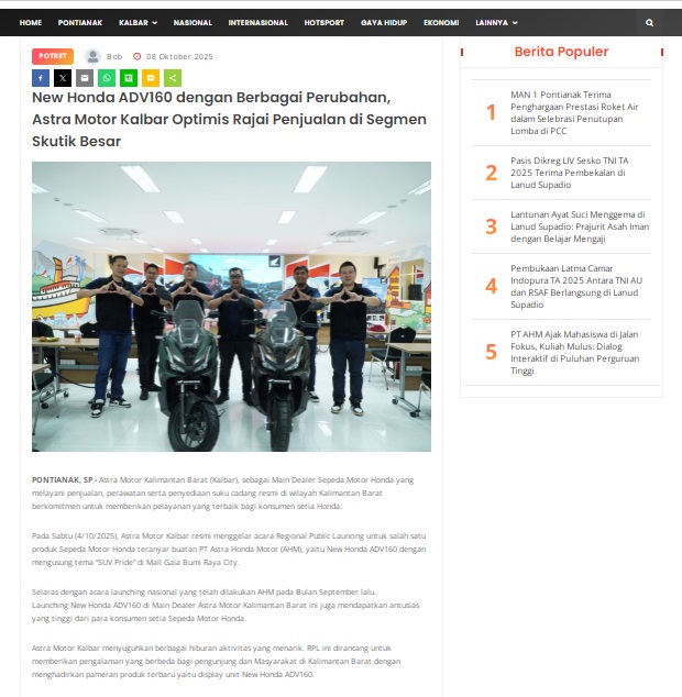 New Honda ADV160 dengan Berbagai Perubahan, Astra Motor Kalbar Optimis Rajai Penjualan di Segmen Skutik Besar by masmul 8 Oktober 2025 in Silahkan kunjungi https://www.suarapemredkalbar.com/read/potret/08102025/new-honda-adv160-dengan-berbagai-perubahan-astra-motor-kalbar-optimis-rajai-penjualan-di-segmen-skutik-besar. You Might Like Regional Public Launching New ADV160 The SUV Pride Grand Launching New PCX 160 Truly Exceptional! Tetap hati-hati ya bro sist berkendara saat hujan.