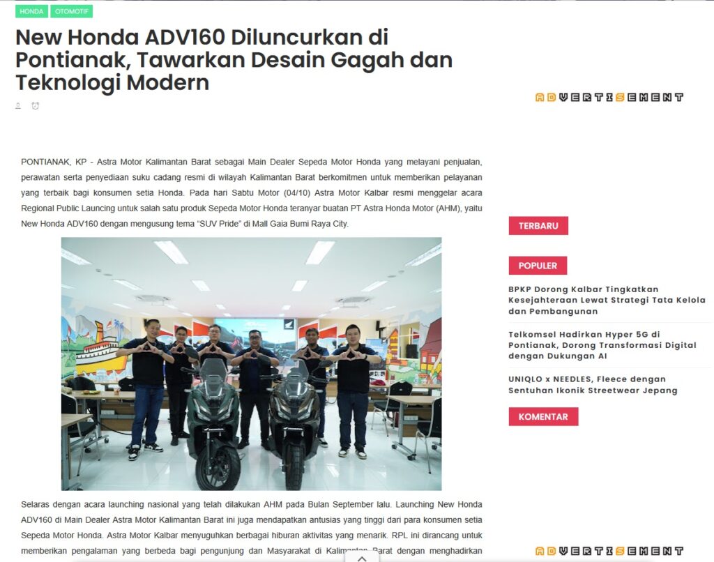 New Honda ADV160 Diluncurkan di Pontianak, Tawarkan Desain Gagah dan Teknologi Modern