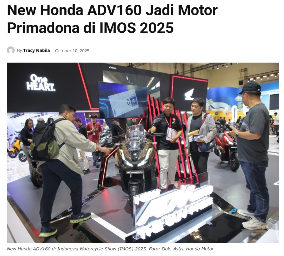 New Honda ADV160 Jadi Motor Primadona di IMOS 2025 by Leo Prima 10 Oktober 2025 in Silahkan kunjungi https://pontianaktoday.id/new-honda-adv160-jadi-motor-primadona-di-imos-2025/. You Might Like Regional Public Launching New ADV160 The SUV Pride Grand Launching New PCX 160 Truly Exceptional! Tetap hati-hati ya bro sist berkendara saat hujan.