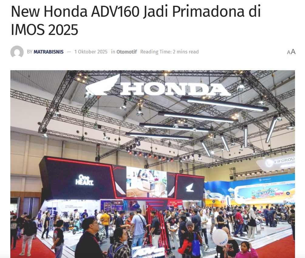 New Honda ADV160 Jadi Primadona di IMOS 2025 by Sri Yuliantiningsih 1 Oktober 2025 in Silahkan kunjungi https://matrabisnis.id/2025/10/01/new-honda-adv160-jadi-primadona-di-imos-2025/. You Might Like Regional Public Launching New ADV160 The SUV Pride Grand Launching New PCX 160 Truly Exceptional! Tetap hati-hati ya bro sist berkendara saat hujan.