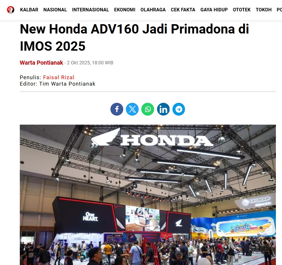 New Honda ADV160 Jadi Primadona di IMOS 2025 by Faisal Rizal 2 Oktober 2025 in Silahkan kunjungi https://wartapontianak.pikiran-rakyat.com/gaya-hidup/pr-1179688767/new-honda-adv160-jadi-primadona-di-imos-2025. You Might Like Regional Public Launching New ADV160 The SUV Pride Grand Launching New PCX 160 Truly Exceptional! Tetap hati-hati ya bro sist berkendara saat hujan.