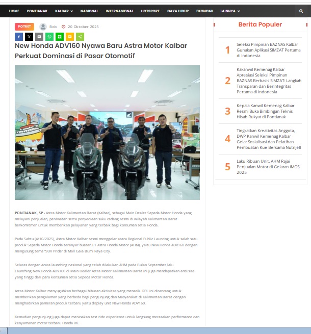 New Honda ADV160 Nyawa Baru Astra Motor Kalbar Perkuat Dominasi di Pasar Otomotif by masmul 20 Oktober 2025 in Silahkan kunjungi https://www.suarapemredkalbar.com/read/potret/20102025/new-honda-adv160-nyawa-baru-astra-motor-kalbar-perkuat-dominasi-di-pasar-otomotif. You Might Like Regional Public Launching New ADV160 The SUV Pride Grand Launching New PCX 160 Truly Exceptional! Tetap hati-hati ya bro sist berkendara saat hujan.