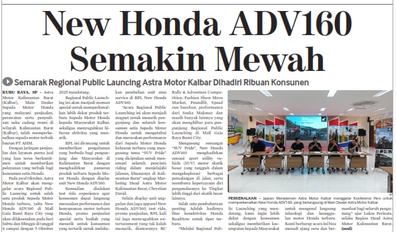 New Honda ADV160 Semakin Mewah, Semarak Regional Public Launching Astra Motor Kalbar Dihadiri Ribuan Konsumen by masmul 6 Oktober 2025 in Silahkan buka . You Might Like Regional Public Launching New ADV160 The SUV Pride Grand Launching New PCX 160 Truly Exceptional! Tetap hati-hati ya bro sist berkendara saat hujan.
